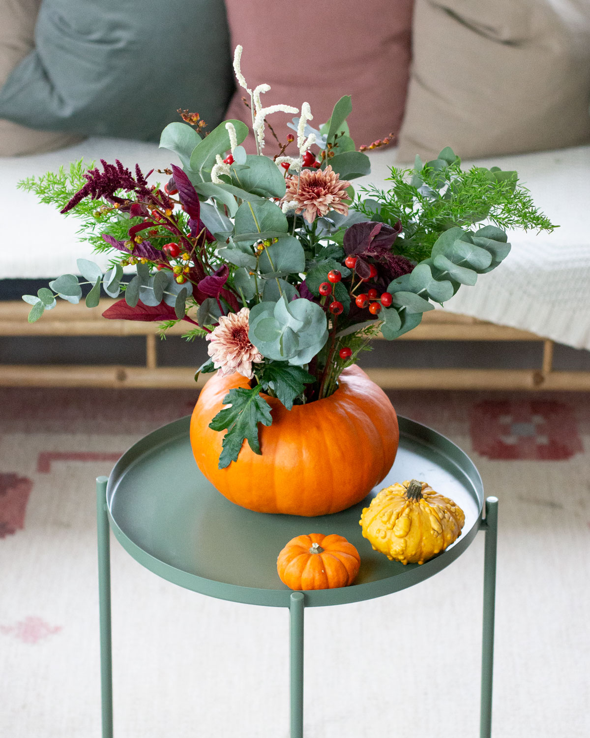 Halloween är högtiden för pyssel och dekorationer. Med en pumpa, vas och snittblommor kan du enkelt fixa en vacker halloweendekoration att sätta på bordet. Vi visar hur du gör en vacker pumpavas!